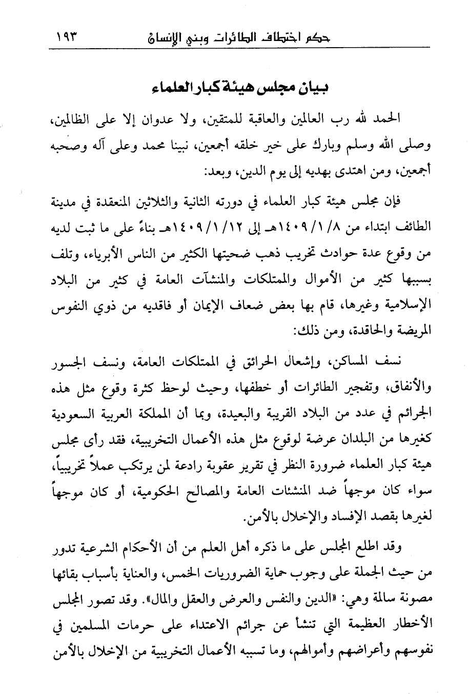 ثالثا: أن المجلس إذ يبين حكم تكفير الناس؛ بغير برهان من كتاب الله وسنة رسوله صلى الله عليه وسلم وخطورة إطلاق ذلك؛ لما يترتب عليه من شرور وآثار، فإنه يعلن للعالم: أن الإسلام بريء من هذا المعتقد الخاطئ، وأن ما يجري في بعض البلدان من سفك للدماء البريئة، وتفجير للمساكن