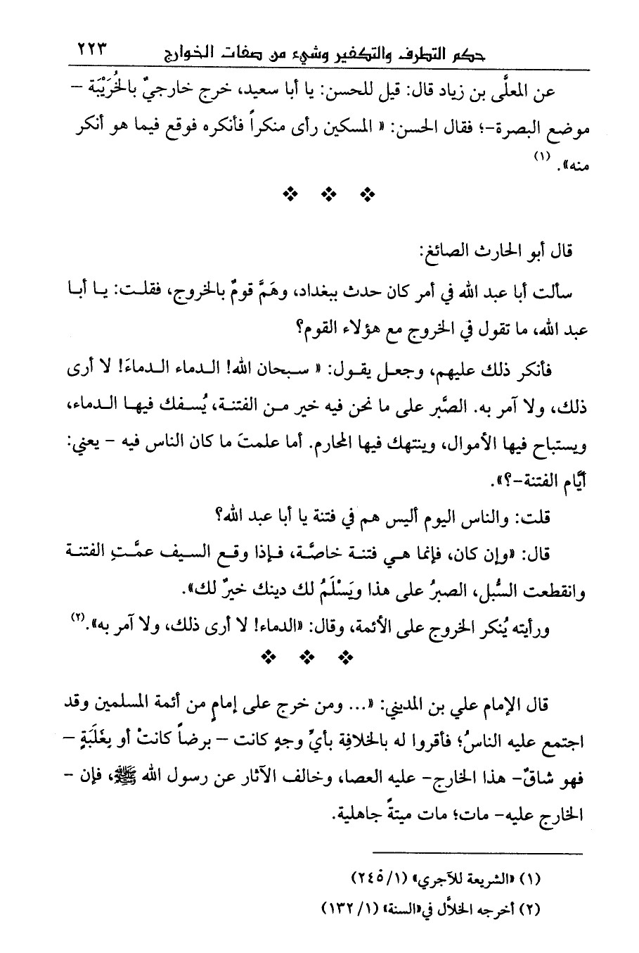 وقوله صلى الله عليه وسلم: " لا ترجعوا بعدي كفارا يضرب بعضكم رقاب بعض" (¬3) والأحاديث في هذا المعنى كثيرة.
