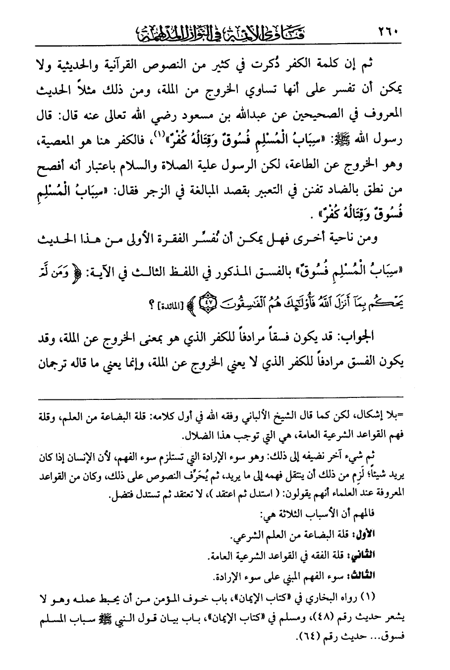 وبالمناسبة نحتاج إلى أن نفقه كيف يرد على من خالف في مثل هذه المسائل والمخالفين في التكفير أو في التضليل أو في ذكر الأمور على غير ما هي عليه، يجب: