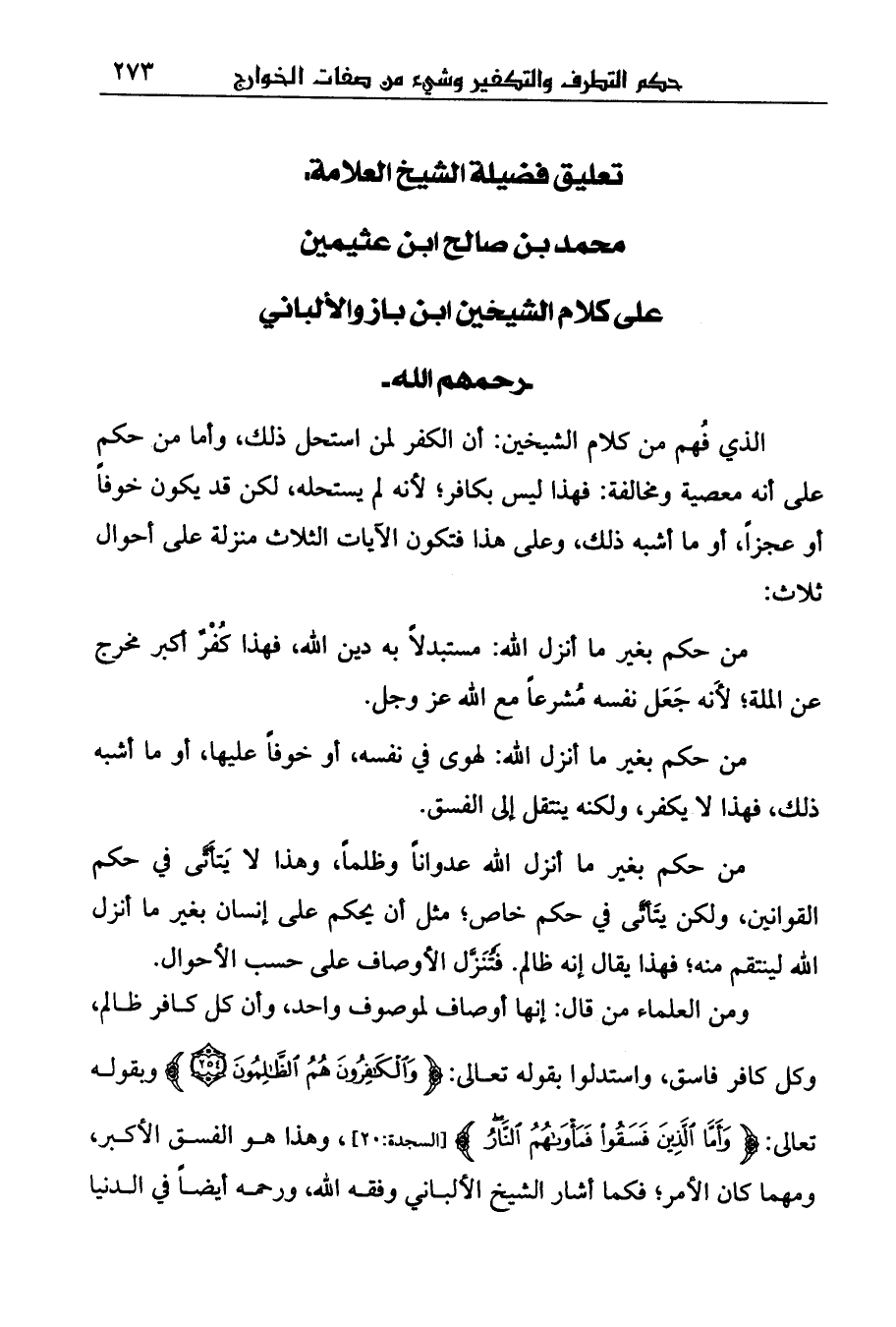 أن السنة والأحاديث النبوية: هي المبينة للأحكام القرآنية وما يراد من النصوص الواردة في كتاب الله في باب معرفة حدود ما أنزل الله، كمعرفة المؤمن، والكافر، والمشرك، والموحد والفاجر، والبر، والظالم، والتقي، وما يراد بالموالاة والتولي، ونحو ذلك من الحدود.