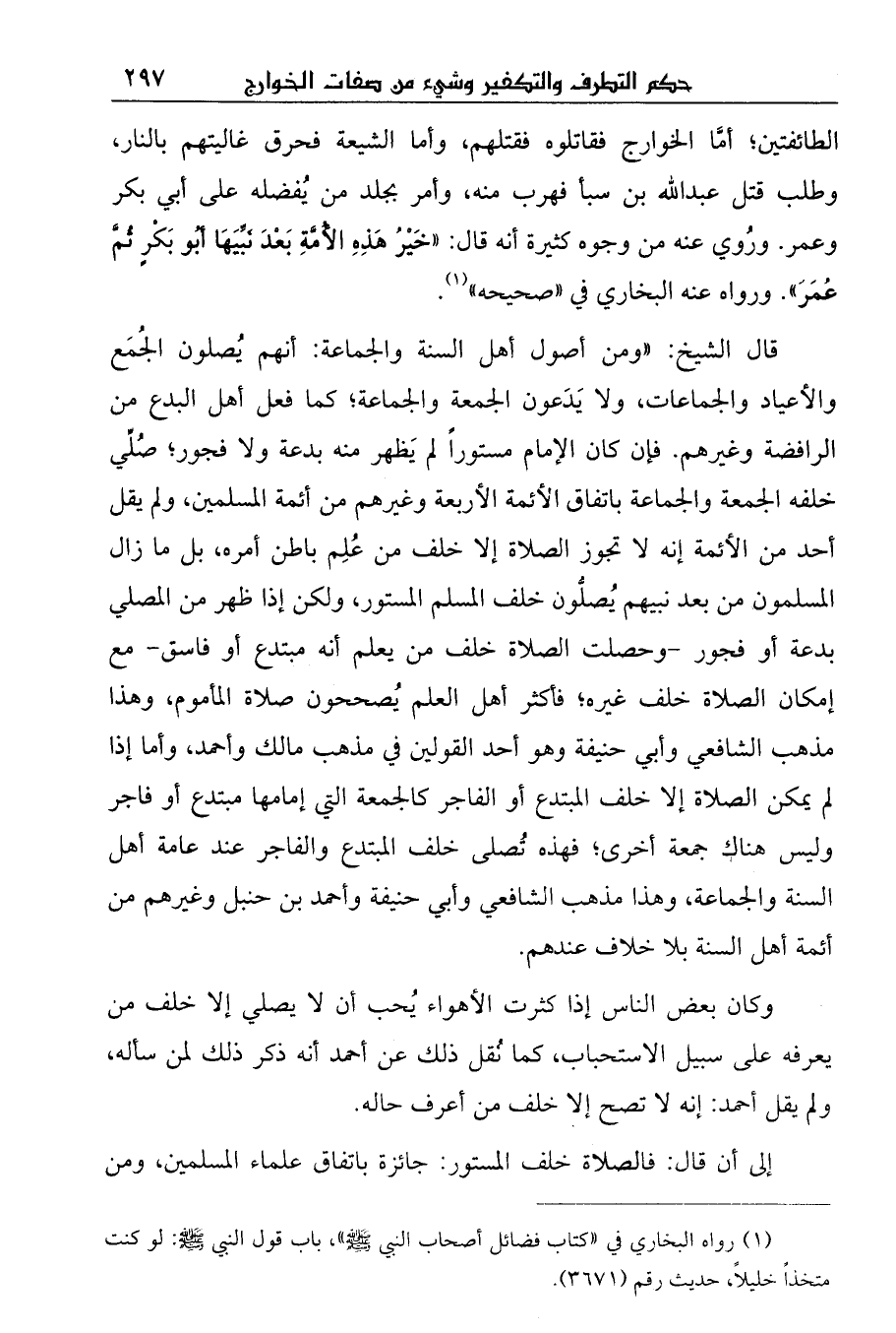الجواب: جهادك في أمك جهاد عظيم، الزم أمك وأحسن إليها، إلا إذا أمرك ولي الأمر بالجهاد فبادر، لقول النبي صلى الله عليه وسلم: "وإذا استنفرتم فانفروا" (¬1). وما دام أن ولي الأمر لم يأمرك، فأحسن إلى أمك، وارحمها، واعلم أن برها من الجهاد العظيم، قدمه النبي صلى الله عليه وسلم على الجهاد في سبيل الله، كما جاء بذلك الحديث الصحيح عن رسول الله صلى الله عليه وسلم فإنه قيل: (يا رسول الله أي العمل أفضل؟ قال: الصلاة على ميقاتها. قلت: ثم أي؟ قال: ثم بر الوالدين. قلت ثم أي؟ قال: الجهاد في سبيل الله. فسكت عن رسول الله صلى الله عليه وسلم ولو استزدته لزادني) [متفق على صحته]. فقدم برهما على الجهاد. عن عبد الله بن عمرو، قال: جاء رجل إلى النبي يستأذنه في الجهاد فقال: " أحي والداك؟ قال: نعم. قال: " ففيهما فجاهد". [متفق على صحته].