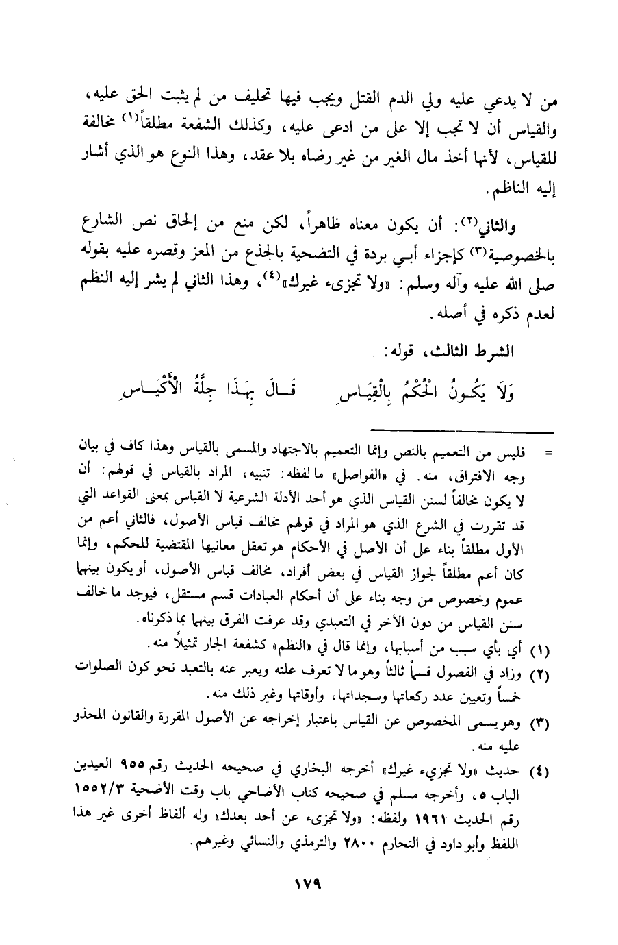 من لَا يَدعِي عَلَيْهِ ولي الدَّم الْقَتْل وَيجب فِيهَا تَحْلِيف من لم يثبت الْحق عَلَيْهِ وَالْقِيَاس أَن لَا تجب إِلَّا على من ادّعى عَلَيْهِ وَكَذَلِكَ الشُّفْعَة مُطلقًا مُخَالفَة للْقِيَاس لِأَنَّهَا أَخذ مَال الْغَيْر من غير رِضَاهُ بِلَا عقد وَهَذَا النَّوْع هُوَ الَّذِي أَشَارَ إِلَيْهِ النَّاظِم