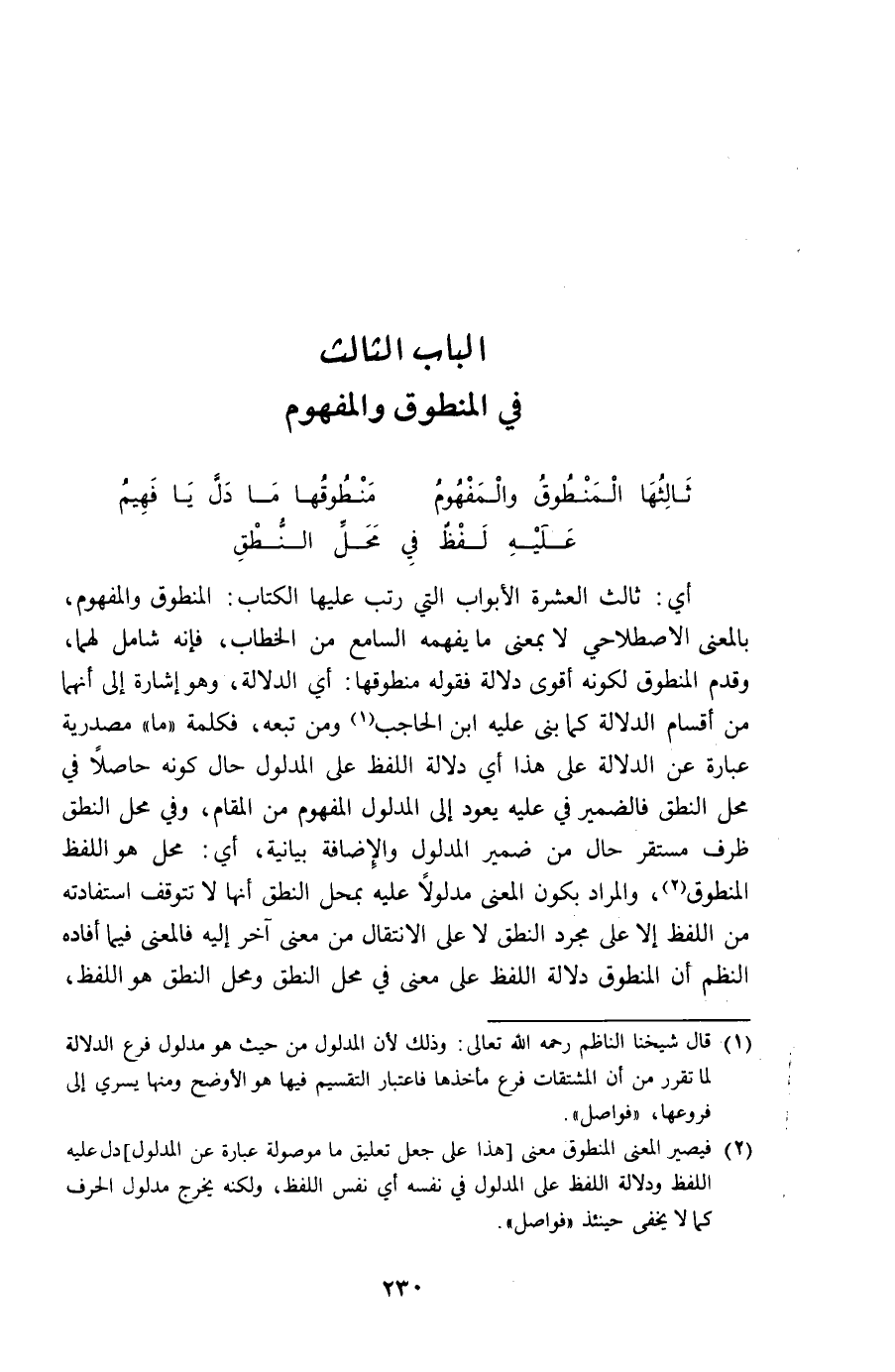 - صَلَّى اللَّهُ عَلَيْهِ وَسَلَّم َ - الْبَاب الثَّالِث فِي الْمَنْطُوق وَالْمَفْهُوم
