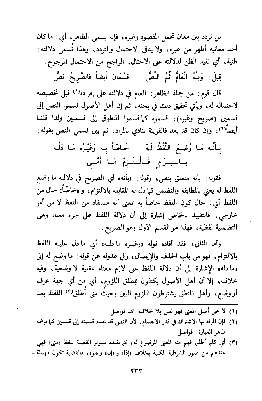 قَالَ قوم من جملَة الظَّاهِر الْعَام فِي دلَالَته على إِفْرَاده قبل تَخْصِيصه لاحْتِمَاله لَهُ وَيَأْتِي تَحْقِيق ذَلِك فِي بَحثه ثمَّ إِن أهل الْأُصُول قسموا النَّص إِلَى قسمَيْنِ صَرِيح وَغَيره قسموه كَمَا قسموا الْمَنْطُوق إِلَى قسمَيْنِ وَلذَا قُلْنَا أَيْضا وَإِن كَانَ قد بعد فالقرينة تنادي بالمراد ثمَّ بَين قسمي النَّص بقوله