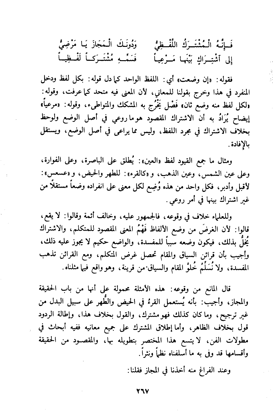 ودونك الْمجَاز يَا مرضِي ... إِلَى اشْتِرَاك بَينهَا مرعيا