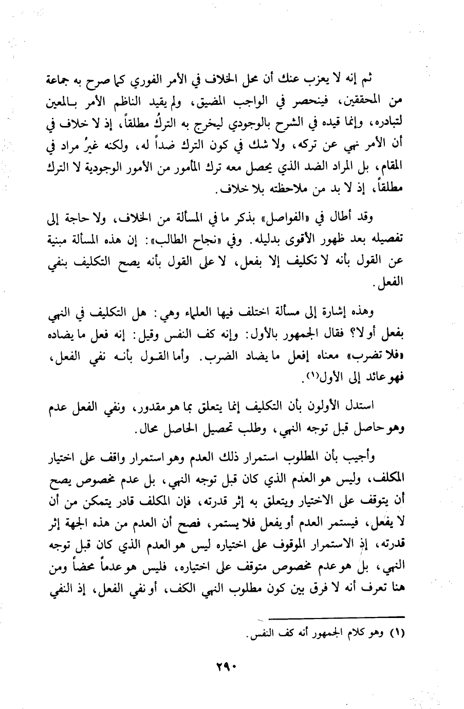 وَقد أَطَالَ فِي الفواصل بِذكر مَا فِي الْمَسْأَلَة من الْخلاف وَلَا حَاجَة إِلَى تَفْصِيله بعد ظُهُور الْأَقْوَى بدليله وَفِي نجاح المطالب إِن هَذِه الْمَسْأَلَة مَبْنِيَّة عَن القَوْل بِأَنَّهُ لَا تَكْلِيف إِلَّا بِفعل لَا على القَوْل بِأَنَّهُ يَصح التَّكْلِيف بِنَفْي الْفِعْل
