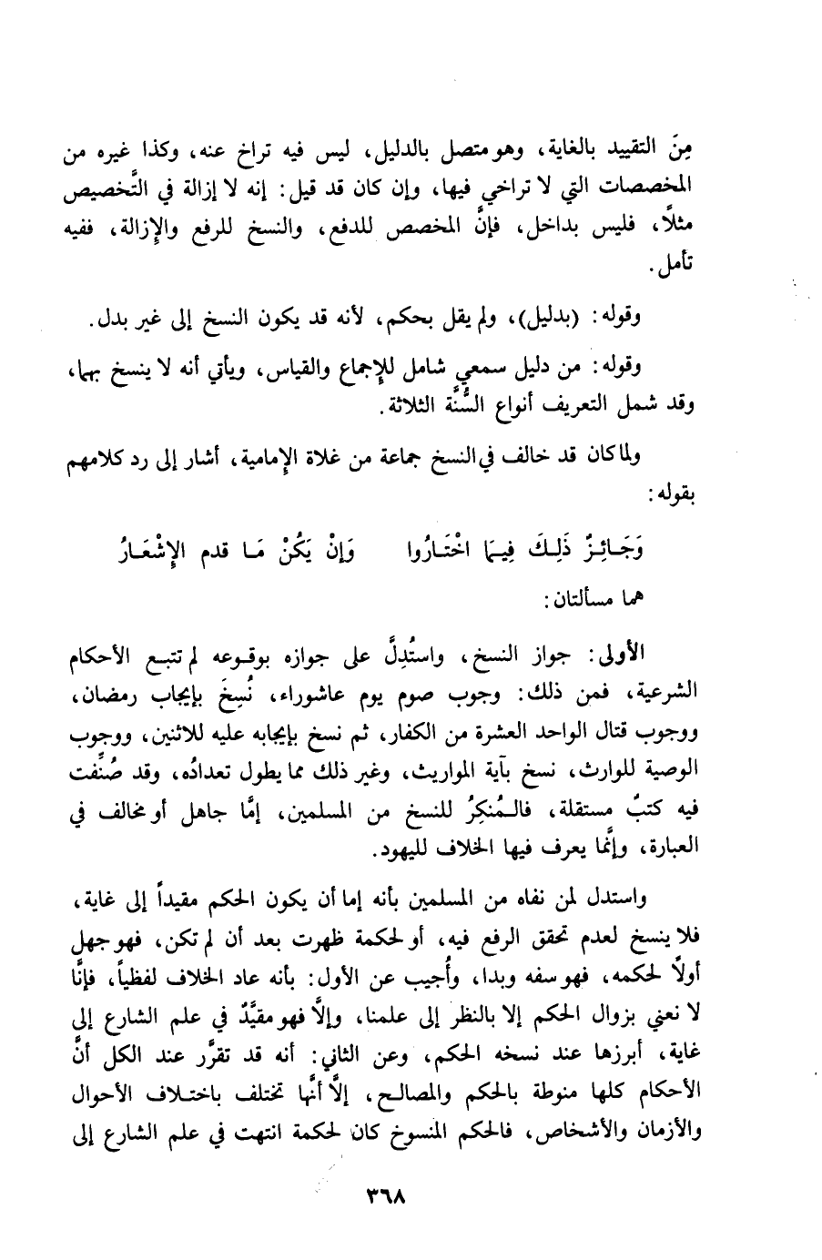 وَلما كَانَ قد خَالف فِي النّسخ جمَاعَة من غلاة الإمامية أَشَارَ إِلَى رد كَلَامهم بقوله ... وَجَائِز ذَلِك فِيمَا اخْتَارُوا ... وَإِن يكن مَا قدم الْإِشْعَار ...