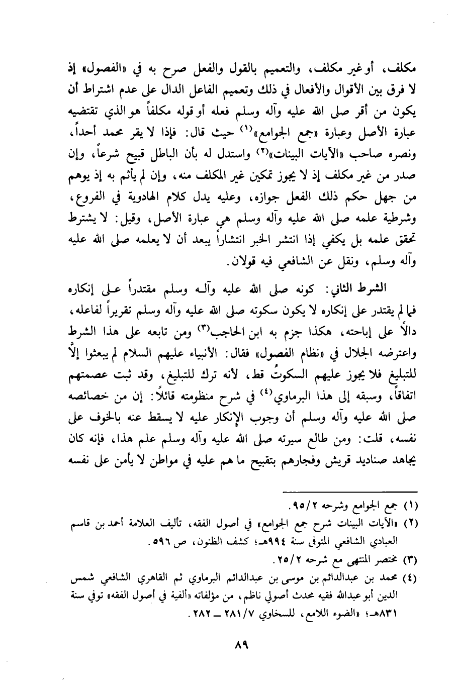 الشَّرْط الثَّانِي كَونه صلى الله عَلَيْهِ وَسلم مقتدرا على إِنْكَاره فَمَا لم يقتدر على إِنْكَاره لَا يكون سُكُوته صلى الله عَلَيْهِ وَسلم تقريرا لفَاعِله دَالا على إِبَاحَته هَكَذَا جزم بِهِ ابْن الْحَاجِب وَمن تَابعه على هَذَا الشَّرْط وَاعْتَرضهُ الْجلَال فِي نظام الْفُصُول فَقَالَ الْأَنْبِيَاء عَلَيْهِم السَّلَام لم يبعثوا إِلَّا للتبيلغ فَلَا يجوز عَلَيْهِم السُّكُوت قطّ لِأَنَّهُ ترك للتبيلغ وَقد ثَبت عصمتهم اتِّفَاقًا وَسَبقه إِلَى هَذَا الْبرمَاوِيّ فِي شرح منظومته قَائِلا إِن من خَصَائِصه صلى الله عَلَيْهِ وَسلم أَن وجوب الْإِنْكَار عَلَيْهِ لَا يسْقط عَنهُ بالخوف على نَفسه قلت وَمن طالع سيرته صلى الله عَلَيْهِ وَسلم علم هَذَا فَإِنَّهُ كَانَ يُجَاهد صَنَادِيد قُرَيْش وفجارهم بتقبيح مَا هم عَلَيْهِ فِي مَوَاطِن لَا يَأْمَن على نَفسه