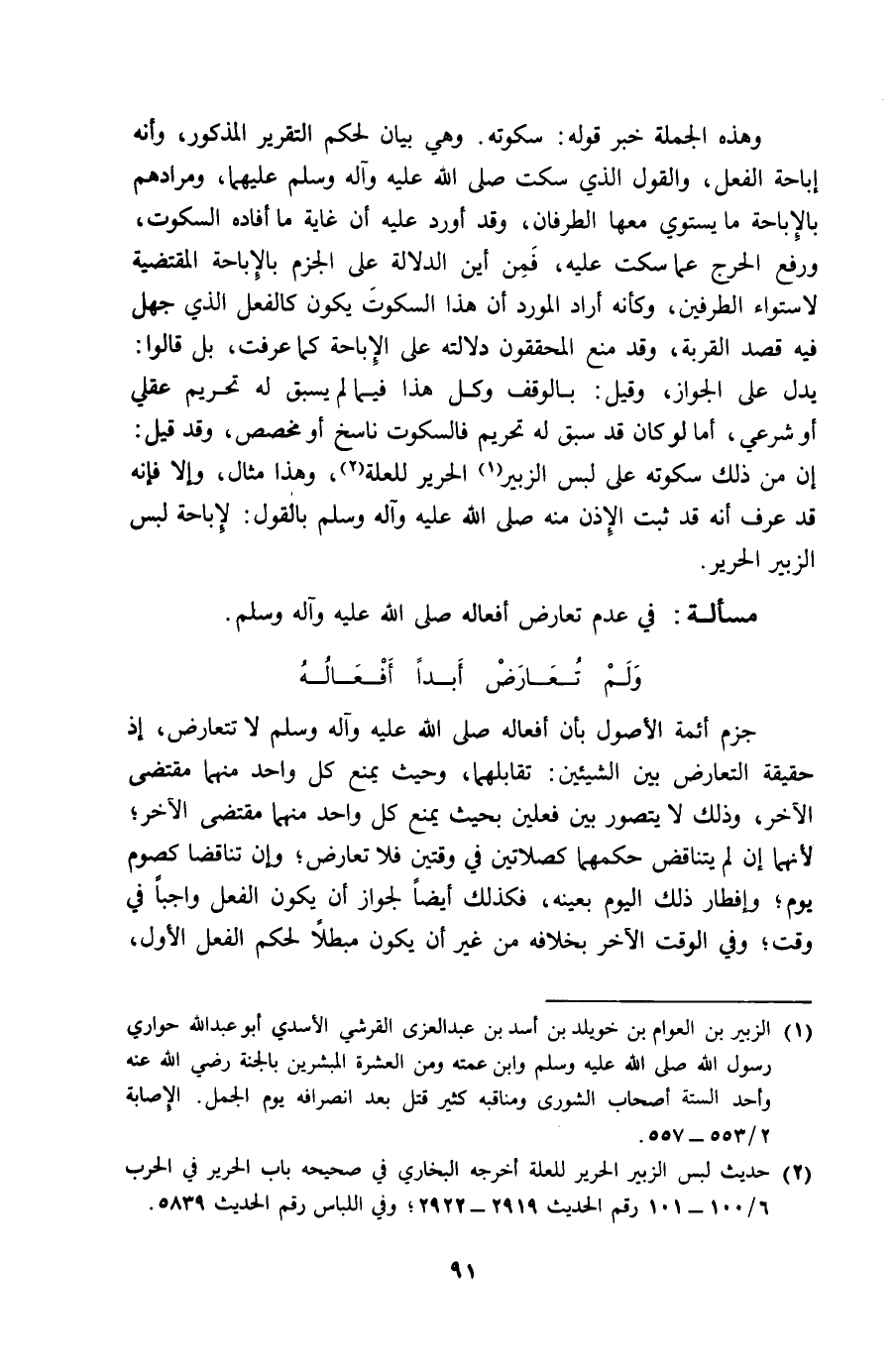 مَسْأَلَة فِي عدم تعَارض أَفعاله صلى الله عَلَيْهِ وَسلم ... وَلم تعَارض أبدا أَفعاله ...