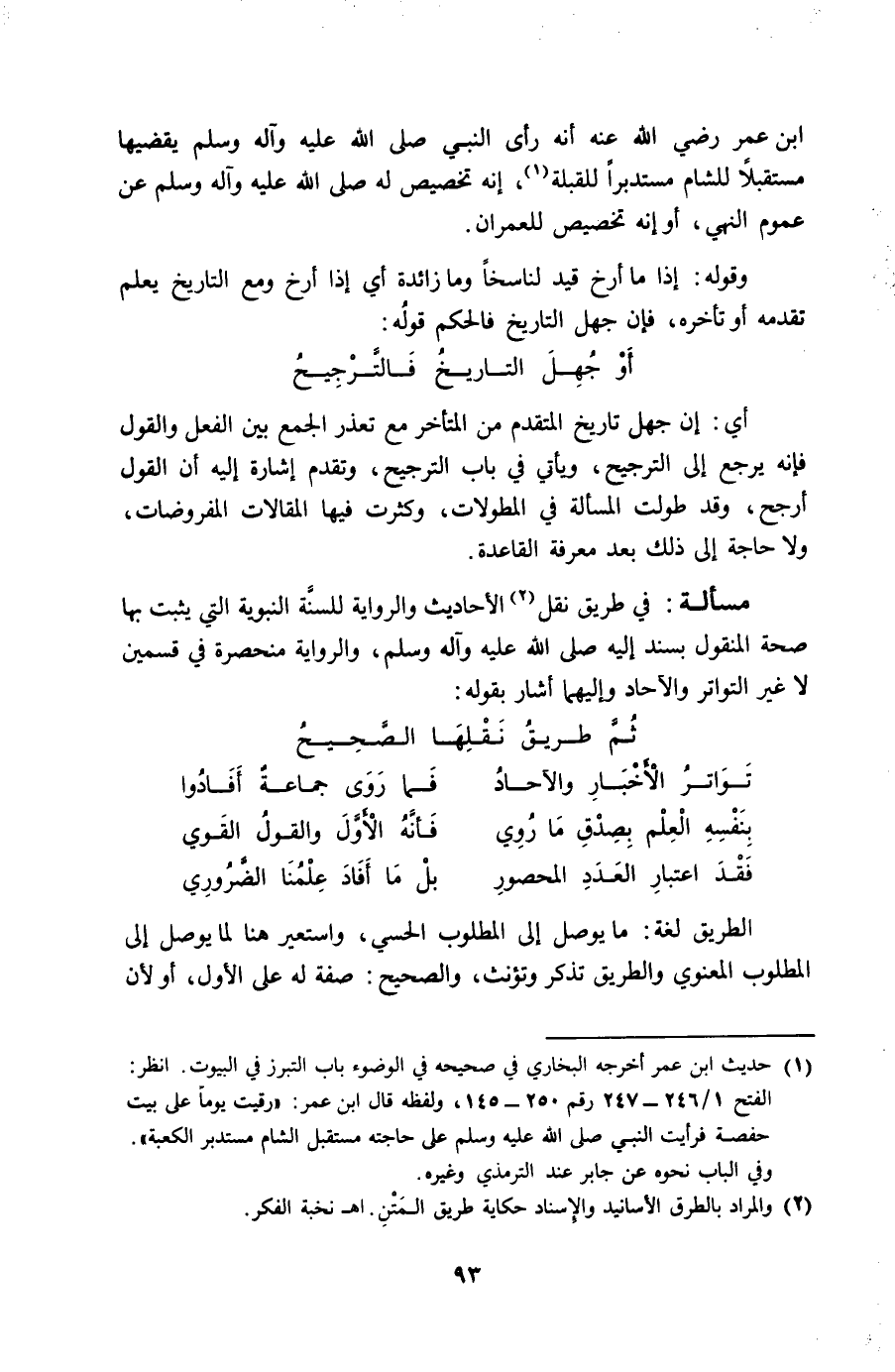 ثمَّ طَرِيق نقلهَا الصَّحِيح ... تَوَاتر الْأَخْبَار والآحاد