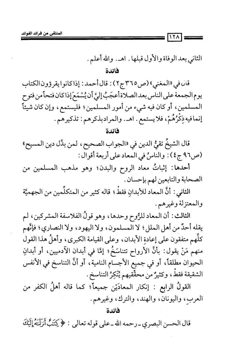 قال الشيخ تقي الدين في ((الجواب الصحيح، لمن بدل دين المسيح)) (ص96ج4) : والناس في المعاد على أربعة أقوال: