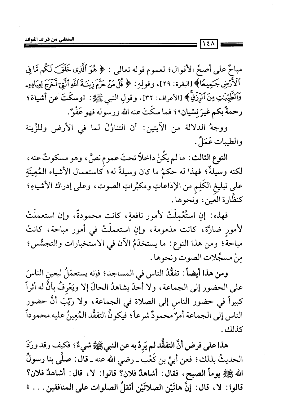 النوع الثالث: ما لم يكن داخلاً تحت عموم نص، وهو مسكوت عنه، لكنه وسيلة، فهذا له حكم ما كان وسيلة له؛ كاستعمال الأشياء المعينة على تبليغ الكلم من الإذاعات ومكبرات الصوت، وعلى إدراك الأشياء، كنظارة العين، ونحوها.