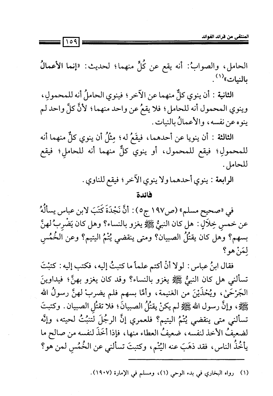 في ((صحيح مسلم)) (ص197ج5) : أن نجده كتب لابن عباس يسأله عن خمس خلال: هل كان النبي صلى الله عليه وسلم يغزو بالنساء؟ وهل كان يضرب لهن بسهم؟ وهل كان يقتل الصبيان؟ ومتي ينقضي يتم اليتيم؟ وعن الخمس لمن هو؟