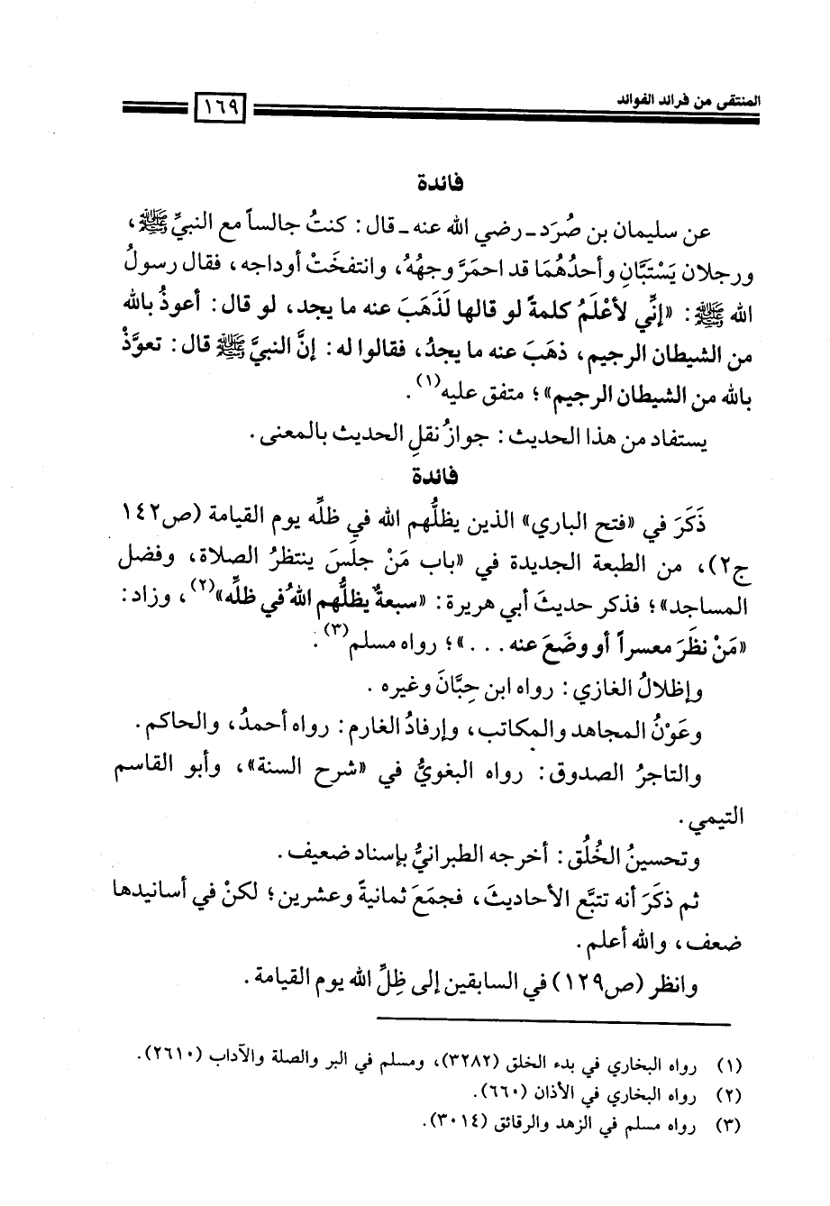 ذكر في ((فتح الباري)) الذين يظلهم الله في ظله يوم القيامة (ص142ج2) من الطبعة الجديدة في ((باب من جلس ينتظر الصلاة، وفضل المساجد)) ؛ فذكر حديث أبي هريرة: ((سبعة يظلهم الله في ظله)) (¬2) ، وزاد: ((من نظر معسراً أو وضع عنه ... )) ؛ رواه مسلم (¬3) .