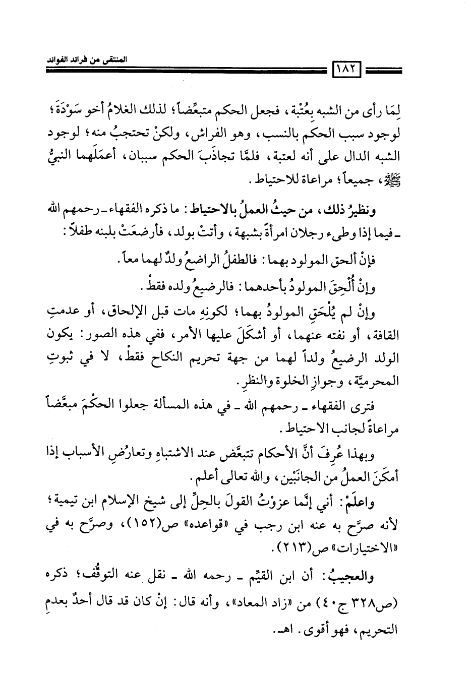 واعلم: أني إنما عزوت القول بالحل إلى شيخ الإسلام ابن تيميه، لأنه صرح به عنه ابن رجب في ((قواعده)) (ص152) ، وصرح به في ((الاختيارات)) (ص213) .