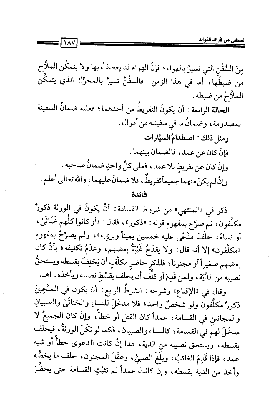وقال في ((الإقناع)) وشرحه: الشرط الرابع: أن يكون في المدعين ذكور مكلفون ولو شخص واحد؛ فلا مدخل للنساء والخناثى والصبيان والمجانين في القسامة، عمداً كان القتل أو خطأ، وإن كان الجميع لا مدخل لهم في القسامة؛ كالنساء والصبيان، فكما لو نكل الورثة، فيحلف بقسطه، ويستحق نصيبه من الدية، هذا إن كانت الدعوى خطأ أو شبه عمد، فإذا قدم الغائب وبلغ الصبي، وعقل المجنون، حلف ما يخصه وأخذ من الدية بقسطه، وإن كانت عمداً لم تثبت القسامة حتى يحضر