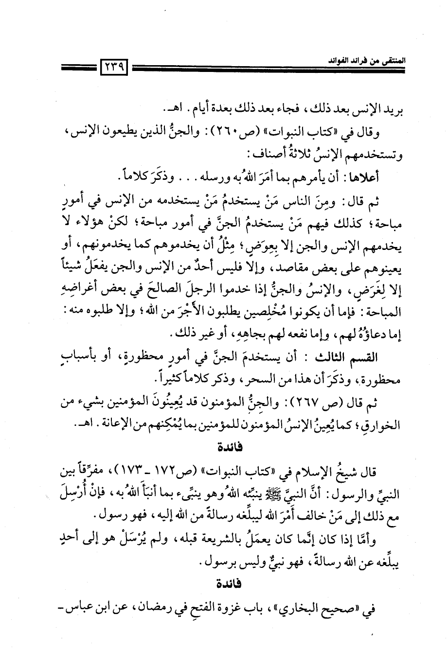 وقال في ((كتاب النبوات)) (ص260) : والجن الذين يطيعون الإنس، وتستخدمهم الإنس ثلاثة أصناف: