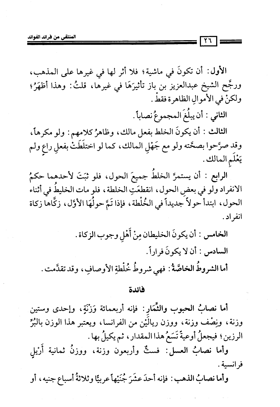 الرابع: أن يستمر الخلط جميع الحول، فلو ثبت لأحدهما حكم الانفراد ولو في بعض الحول، انقطعت الخلطة، فلو مات الخليط في أثناء الحول، ابتدأ حولاً جديداً في الخلطة، فإذا تم حولها الأول، زكاها زكاة انفراد.