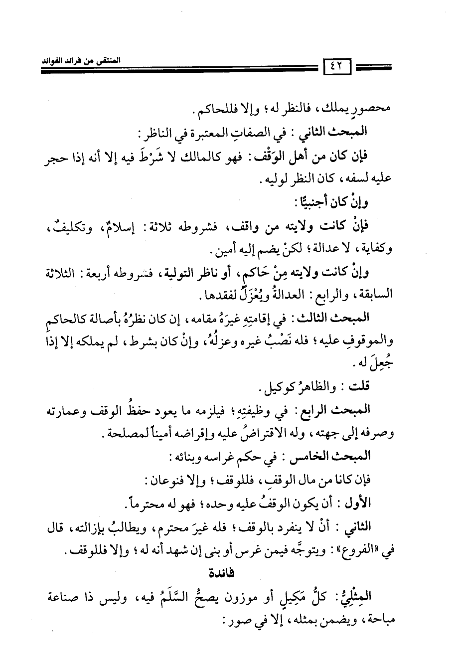 المبحث الثاني: في الصفات المعتبرة في الناظر: