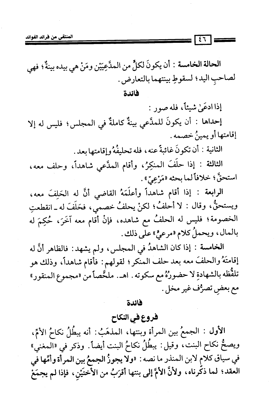 الأول: الجمع بين المرأة وبنتها، المذهب: أنه يبطل نكاح الأم، ويصح نكاح البنت، وقيل: يبطل نكاح البنت أيضاً. وذكر في ((المغني)) في سياق كلام لابن المنذر ما نصه: ((ولا يجوز الجمع بين المرأة وأمها في العقد؛ لما ذكرناه، ولأن الأم إلى بنتها أقرب من الأختين، فإذا لم يجمع