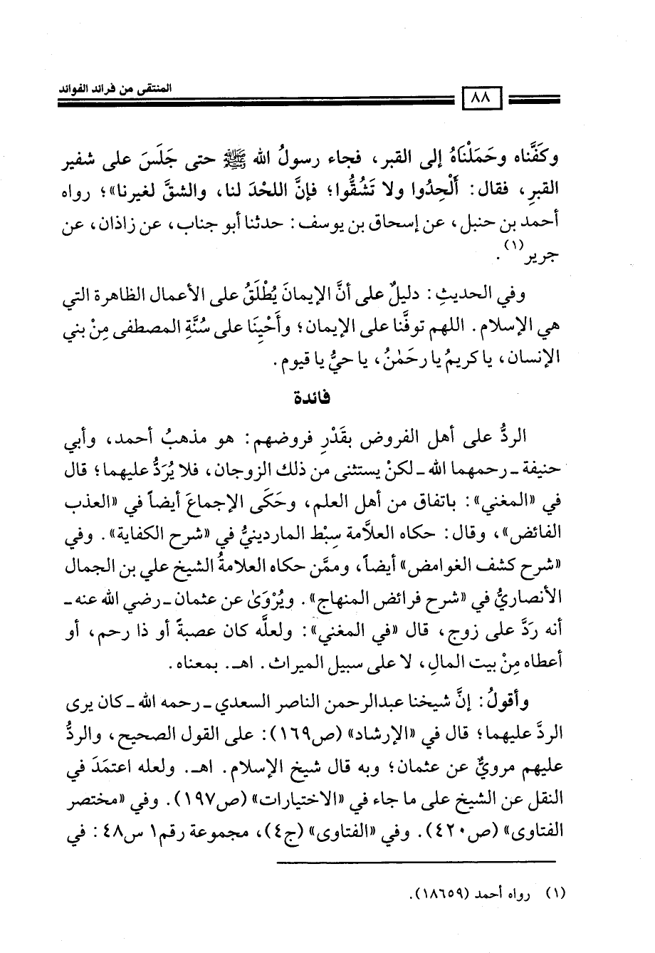 وأقول: إن شيخنا عبد الرحمن الناصر السعدي- رحمه الله- كان يرى الرد عليهما؛ قال في ((الإرشاد)) (ص169) : على القول الصحيح، والرد عليهم مروي عن عثمان، وبه قال شيخ الإسلام. اهـ. ولعله اعتمد في النقل عن الشيخ على ما جاء في ((الاختيارات)) (ص197) . وفي ((مختصر الفتاوي)) (ص420) وفي ((الفتاوي)) (ج4) ، مجموعة رقم 1 س48: في