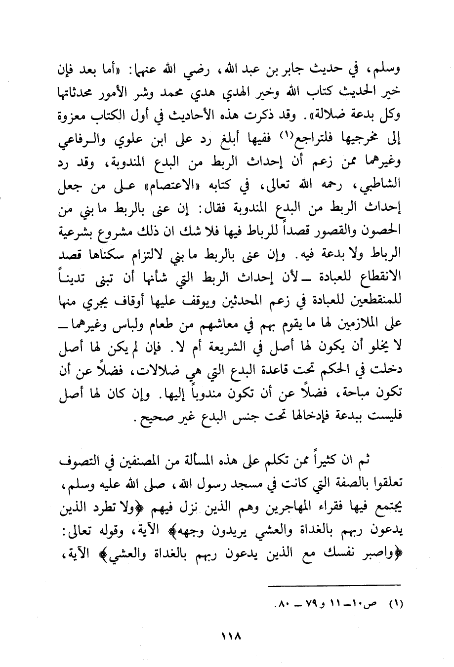 وسلم - في حديث جابر بن عبد الله رضي الله عنهما: أما بعد فإن خير الحديث كتاب الله وخير الهدي هدي محمد وشر الأمور محدثاتها وكل بدعة ضلالة، وقد ذكرت هذه الأحاديث في أول الكتاب معزوة إلى مخرجيها فلتراجع (¬1) ففيها أبلغ رد على ابن علوي والرفاعي وغيرهما ممن زعم أن إحداث الربط من البدع المندوبة، وقد رد الشاطبي رحمه الله تعالى في كتابه "الاعتصام" على من جعل إحداث الربط من البدع المندوبة فقال: إن عني بالربط ما بني من الحصون والقصور قصدا للرباط فيها فلا شك إن ذلك مشروع بشرعية الرباط ولا بدعة فيه.