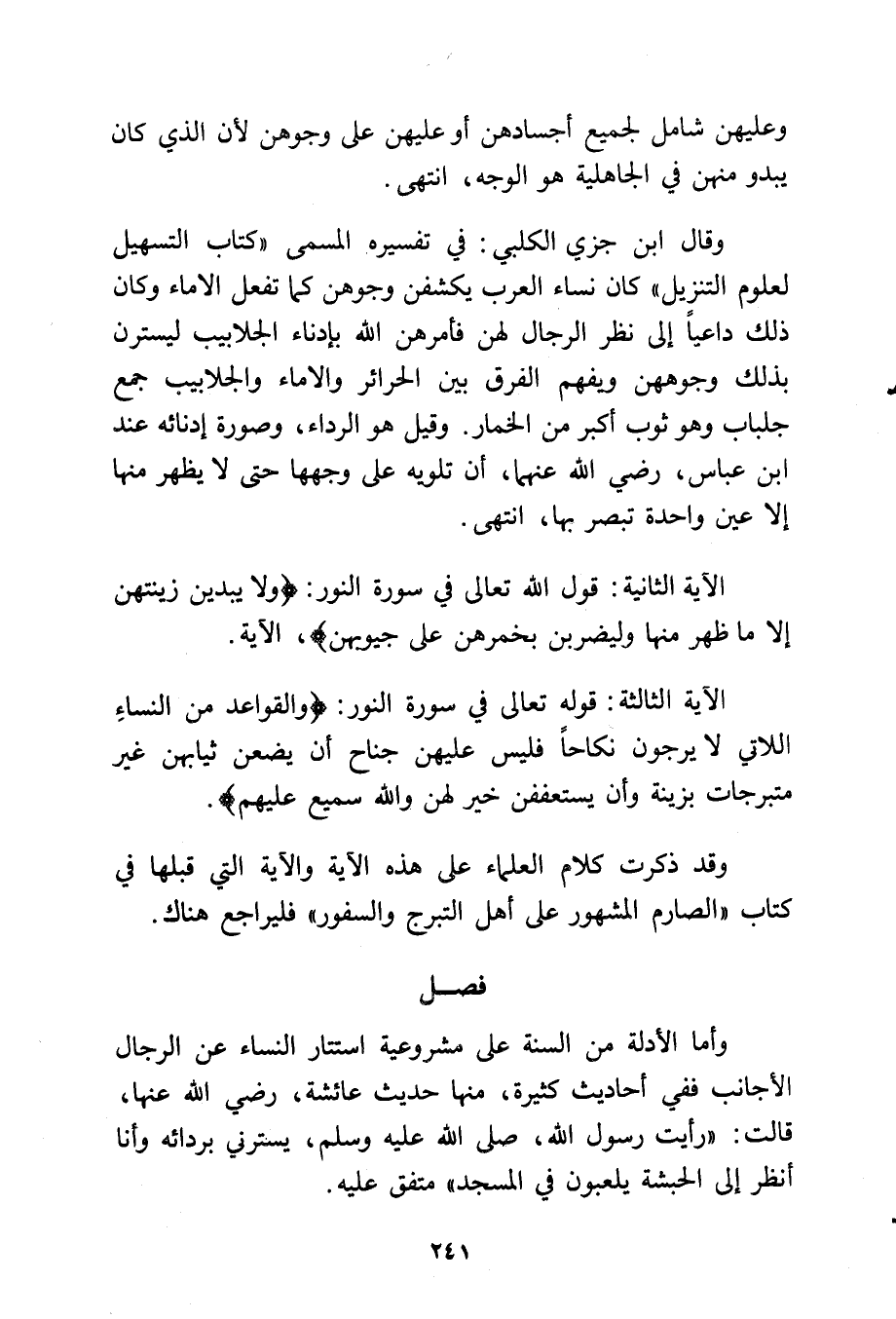 وقد ذكرت كلام العلماء على هذه الآية والآية التي قبلها في كتاب "الصارم المشهور على هل التبرج والسفور" فليراجع هناك.