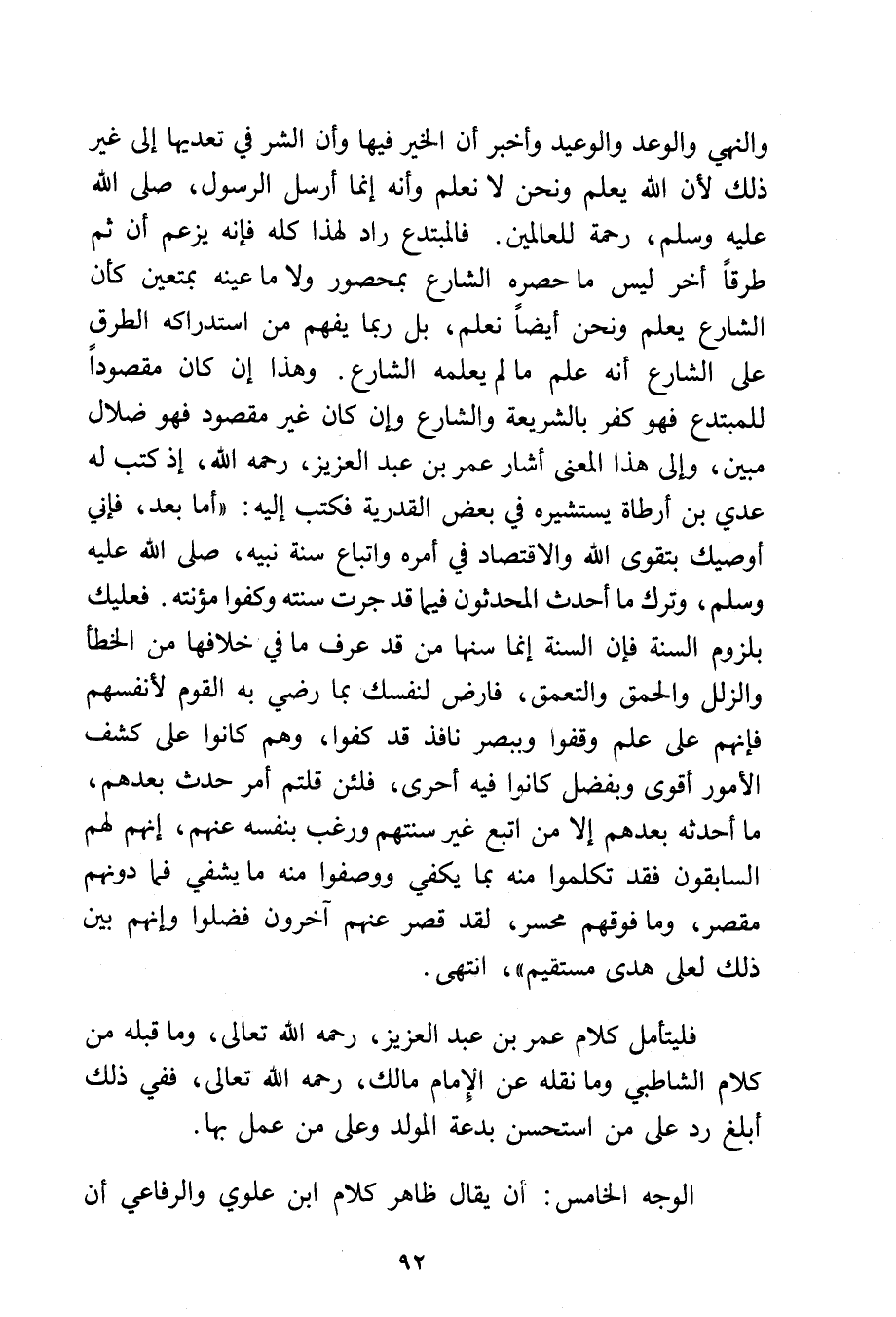 الوجه الخامس: أن يقال ظاهر كلام ابن علوي والرفاعي أن