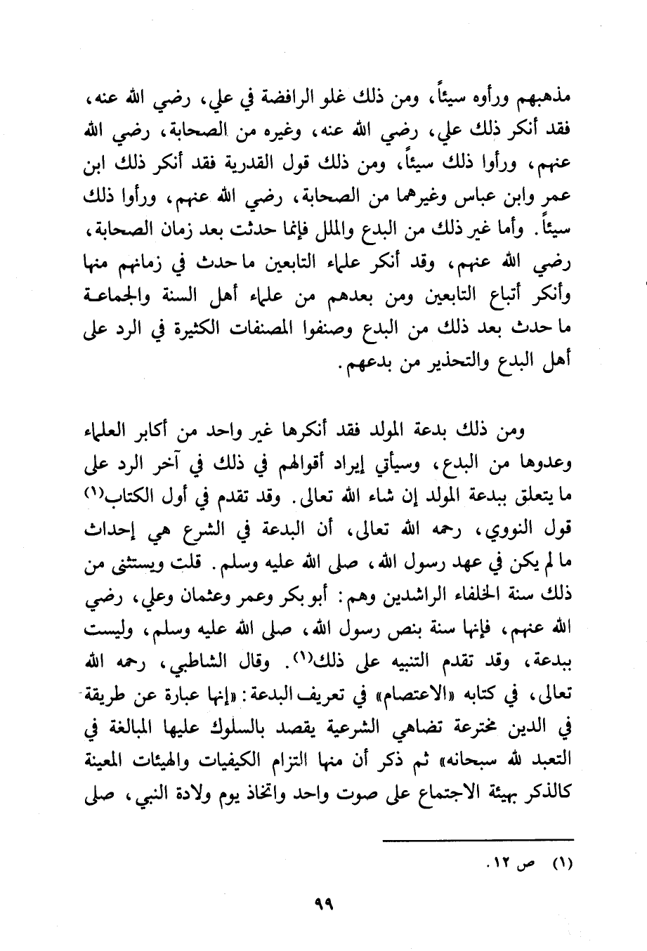 ومن ذلك بدعة المولد فقد أنكرها غير واحد من أكابر العلماء وعدوها من البدع، وسيأتي إيراد أقوالهم في ذلك في آخر الرد على ما يتعلق ببدعة المولد إن شاء الله تعالى