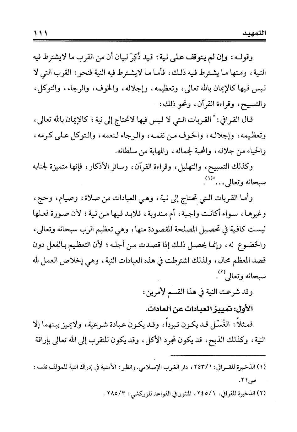 (¬1) الذّخيرة للقرافي: 1/ 243، دار الغرب الإسلامي. وانظر: الأمنية في إدراك النية للمؤلف نفسه: ص 21.