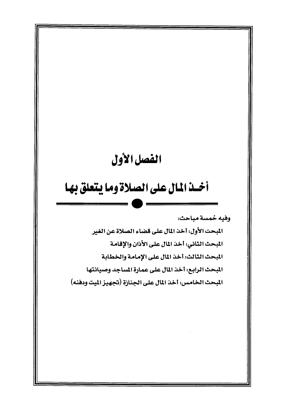 الفصل الأوّل أخذ المال على الصّلاة وما يتعلّق بها