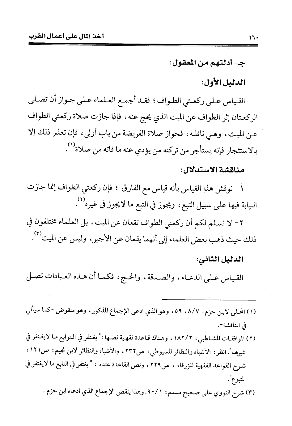 1 - نوقش هذا القياس بأنّه قياس مع الفارق؛ فإن ركعتي الطّواف إنّما جازت النِّيابة فيها على سبيل التبع، ويجوز في التبع ما لا يجوز في غيره (¬2).