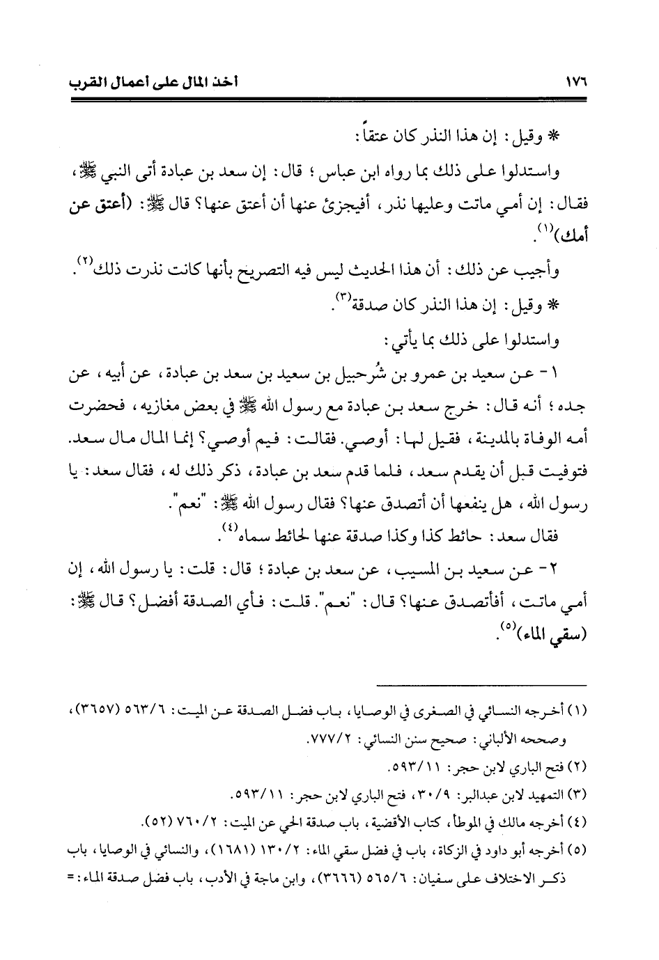 (¬5) أخرجه أبو داود في الزَّكاة، باب في فضل سقي الماء: 2/ 130 (1681)، والنسائي في الوصايا، باب ذكر الاختلاف على سفيان: 6/ 565 (3666)، وابن ماجة في الأدب، باب فضل صدقة الماء: =