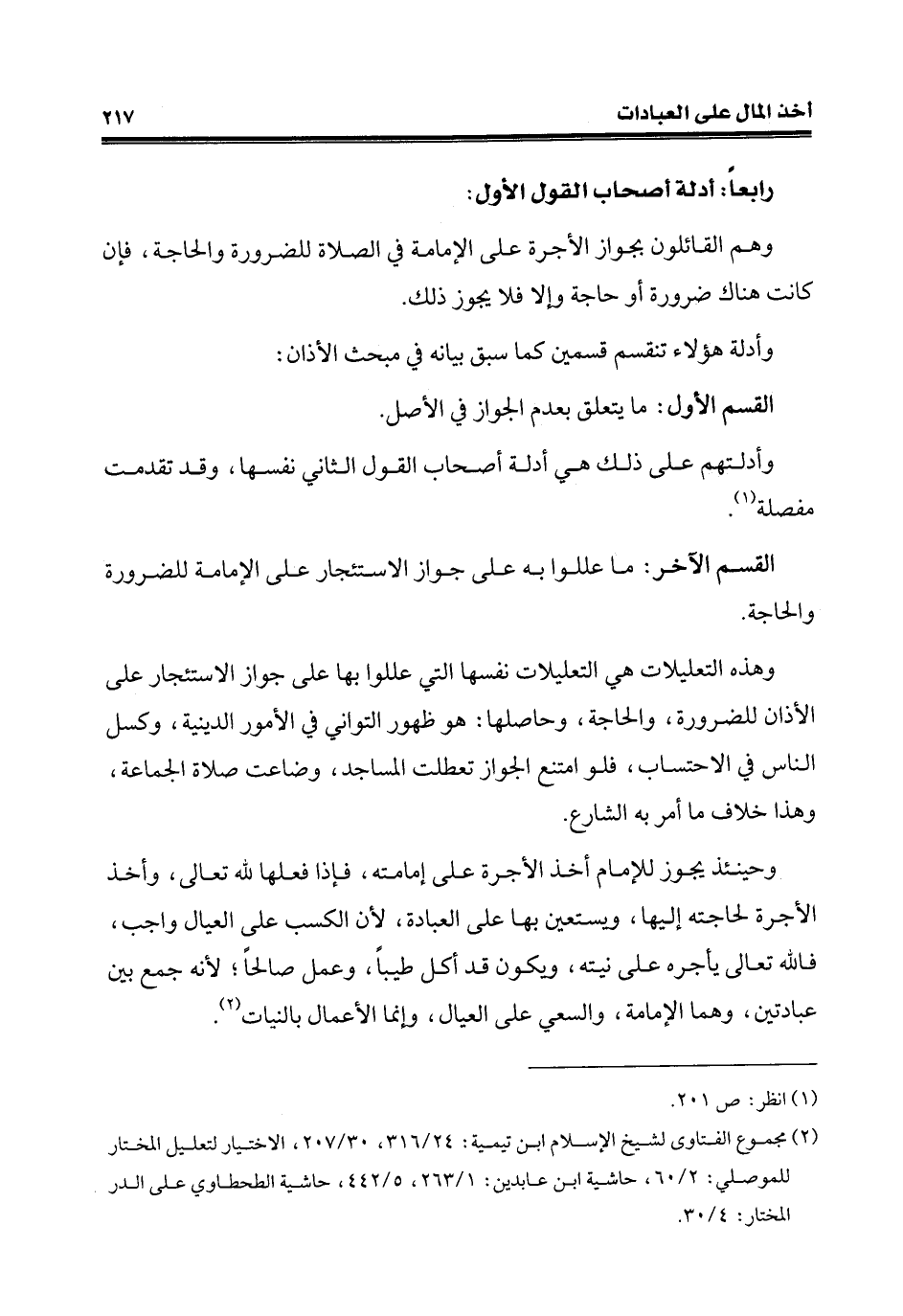 (¬2) مجموع الفتاوى لشيخ الإسلام ابن تيمية: 24/ 316، 30/ 207، الاختيار لتعليل المختار للموصلّي: 2/ 60، حاشية ابن عابدين: 1/ 263، 5/ 442، حاشية الطحطاوي على الدر المختار: 4/ 30.