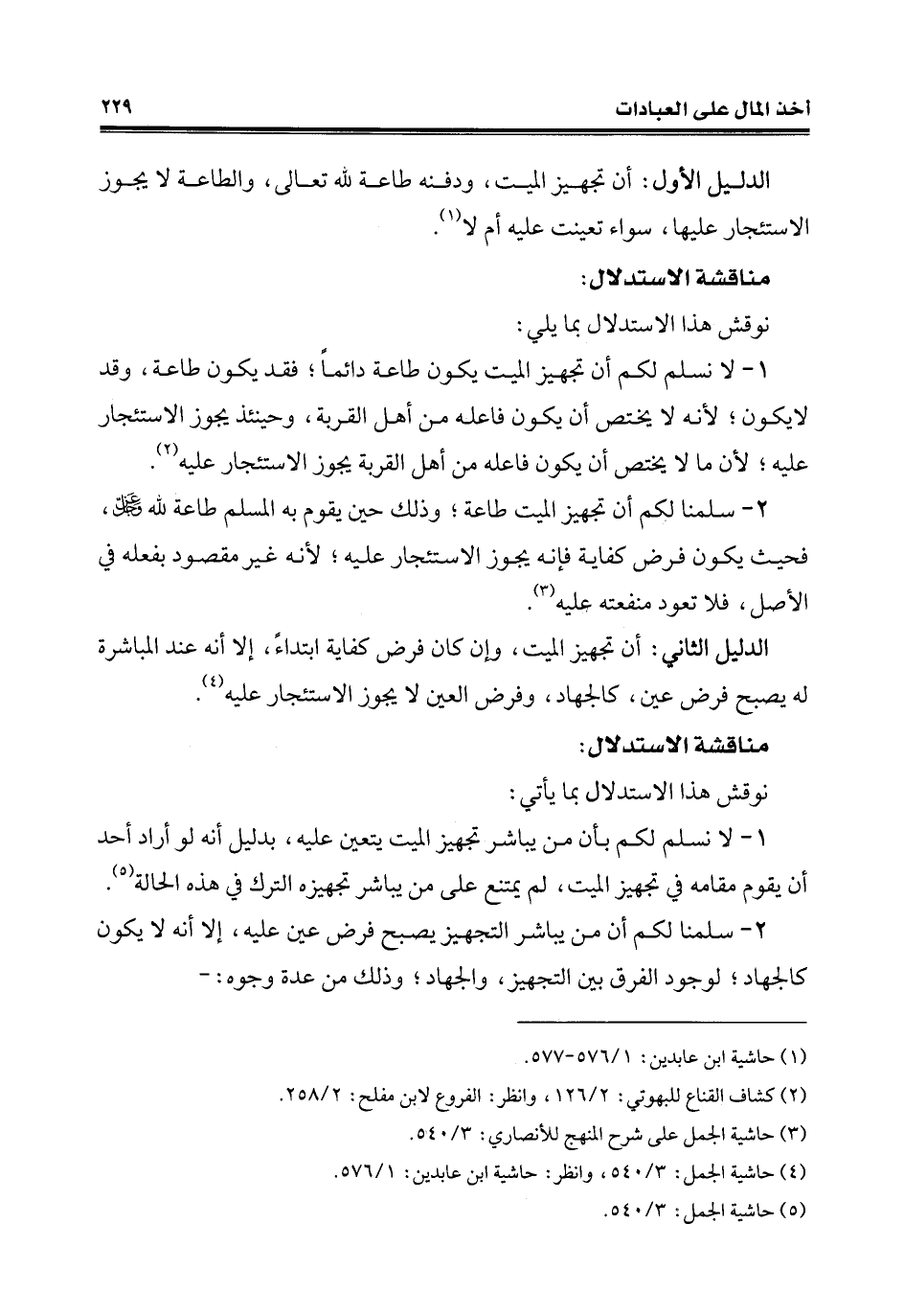 2 - سلمنا لكم أن تجهيز الميِّت طاعة؛ وذلك حين يقوم به المسلم طاعة لله -عَزَّ وَجَلَّ-، فحيث يكون فرض كفاية فإنّه يجوز الاستئجار عليه؛ لأنّه غير مقصود بفعله في الأصل، فلا تعود منفعته عليه (¬3).