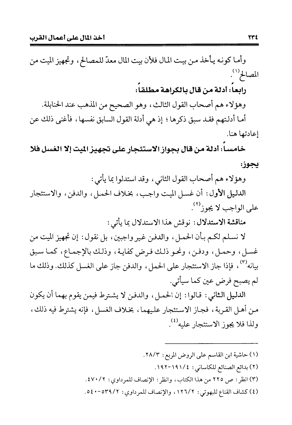(¬4) كشاف القناع للبهوتي: 2/ 126، والإنصاف للمرداوي: 2/ 539 - 540.