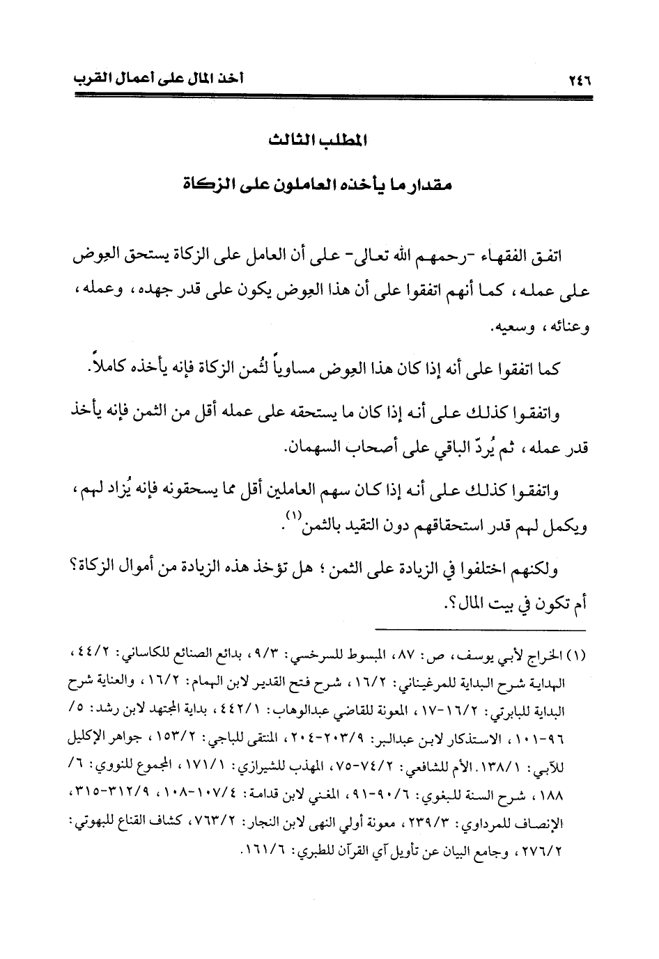 (¬1) الخراج لأبي يوسف، ص: 87، المبسوط للسرخسي: 3/ 9، بدائع الصنائع للكاساني: 2/ 44، الهداية شرح البداية للمرغيناني: 2/ 16، شرح فتح القدير لابن الهمام: 2/ 16، والعناية شرح البداية للبابرتي: 2/ 16 - 17، المعونة للقاضي عبد الوهّاب: 1/ 442، بداية المجتهد لابن رشد: 5/ 96 - 101، الاستذكار لابن عبد البرّ: 9/ 203 - 204، المنتقى للباجي: 2/ 153، جواهر الإكليل للآبي:1/ 138. الأم للشافعي: 2/ 74 - 75، المهذب للشيرازي: 1/ 171، المجموع للنووي: 6/ 188، شرح السُّنَّة للبغوي: 3/ 90 - 91، المغني لابن قدامة: 4/ 107 - 108، 9/ 312 - 315، الإنصاف للمرداوي: 3/ 239، معونة أولي النّهي لابن النجار: 2/ 763، كشاف القناع للبهوتي: 2/ 276، وجامع البيان عن تأويل آي القرآن للطبري: 6/ 161.