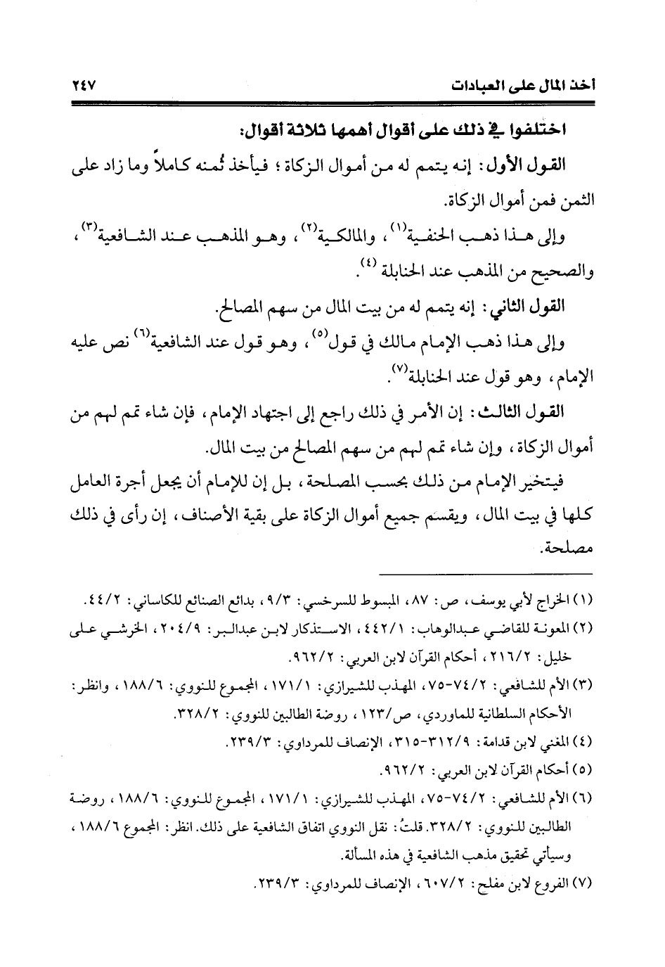 (¬1) الخراج لأبي يوسف، ص: 87، المبسوط للسرخسي: 3/ 9، بدائع الصنائع للكاساني: 2/ 44.
