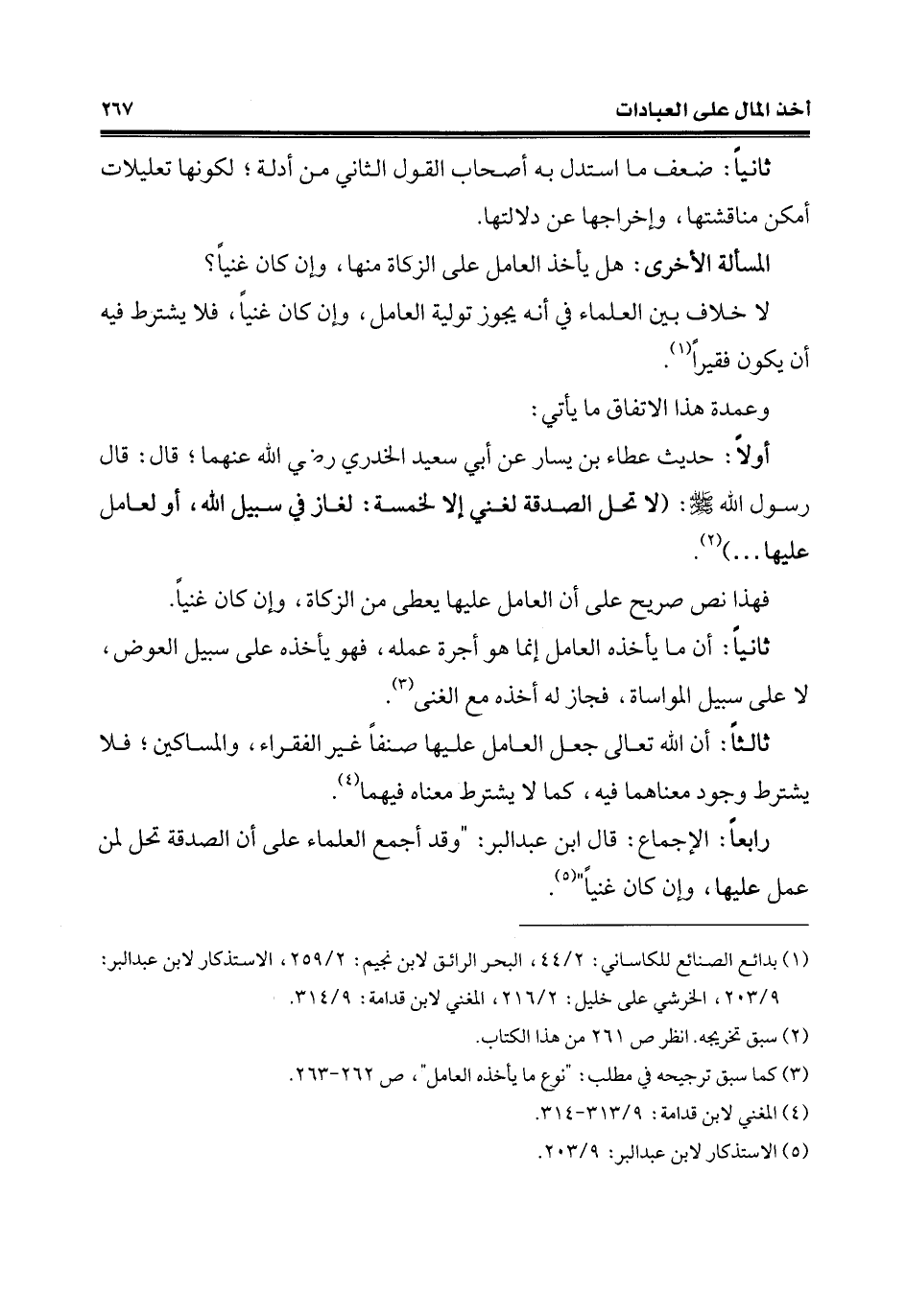 رابعًا: الإجماع: قال ابن عبد البرّ: "وقد أجمع العلماء على أن الصَّدقة تحل لمن عمل عليها، وإن كان غنيًا" (¬5).
