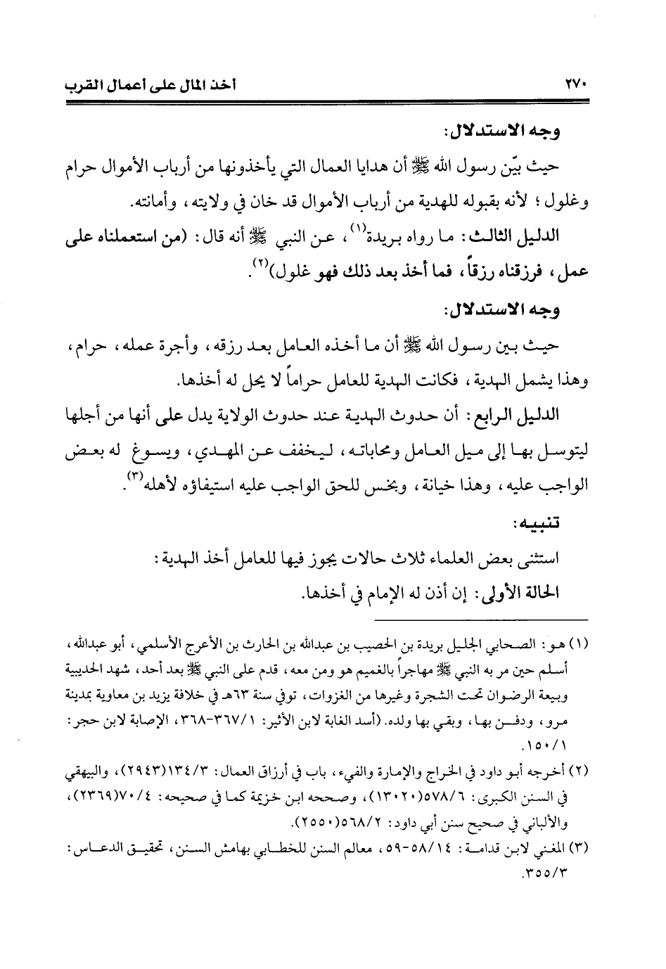 الدّليل الثّالث: ما رواه بريدة (¬1)، عن النّبيّ - صلّى الله عليه وسلم - أنّه قال: (من استعملناه على عمل، فرزقناه رزقًا، فما أخذ بعد ذلك فهو غلول) (¬2).
