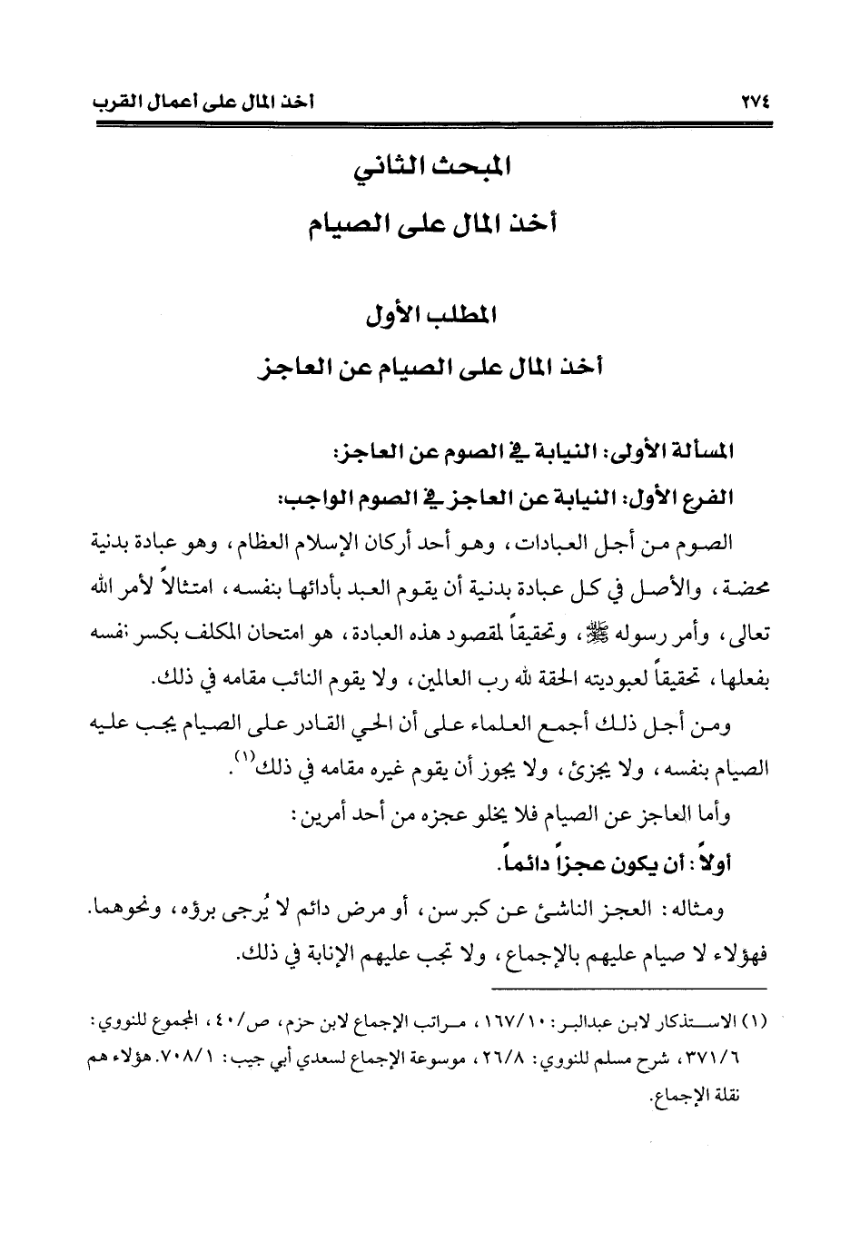 المطلب الأوّل أخد المال على الصِّيام عن العاجز
