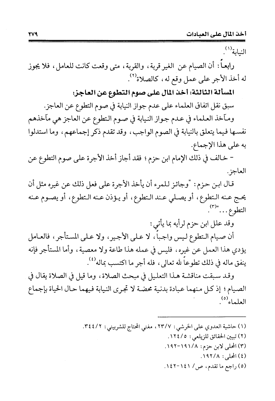 - خالف في ذلك الإمام ابن حزم؛ فقد أجاز أخذ الأجرة على صوم التطوع عن العاجز.