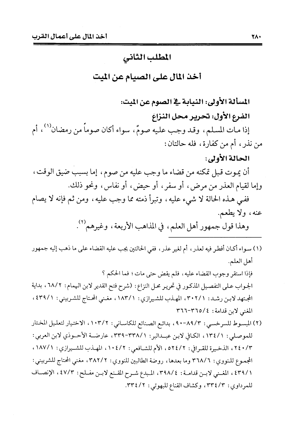 (¬2) المبسوط للسرخسي: 3/ 89 - 90، بدائع الصنائع للكاساني: 2/ 103، الاختيار لتعليل المختار للموصلّي: 1/ 134، الكافي لابن عبد البرّ: 1/ 338 - 339، عارضة الأحوذي لابن العربي: 3/ 240، الذّخيرة للقرافي: 2/ 524، الأم للشافعي: 2/ 104، المهذب للشيرازي: 1/ 187، المجموع للنووي: 6/ 368 وما بعدها، روضة الطالبين للنووي: 2/ 382، مغني المحتاج للشربيني: 1/ 439، المغني لابن قدامة: 4/ 398، المبدع شرح المقنع لابن مفلح: 3/ 47، الإنصاف للمرداوي: 3/ 334، وكشاف القناع للبهوتي: 2/ 334.