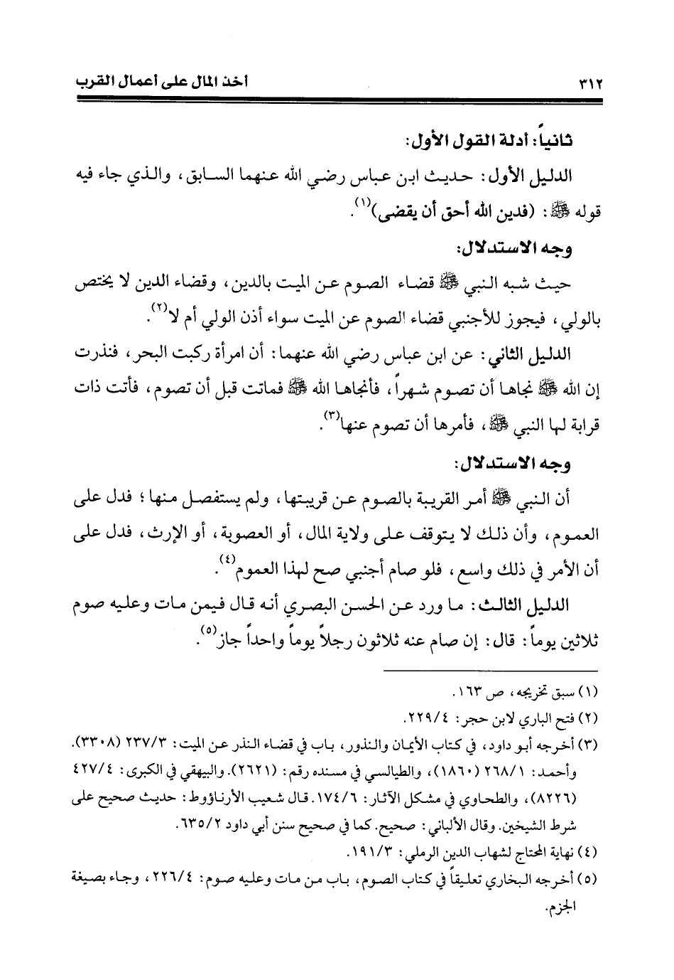 (¬3) أخرجه أبو داود، في كتاب الأيمان والنذور، باب في قضاء النذر عن الميت: 3/ 237 (3308). وأحمد: 1/ 268 (1860)، والطيالسي في مسنده رقم: (2621). والبيهقي في الكبرى: 4/ 427 (8226)، والطحاوي في مشكل الآثار: 6/ 174. قال شعيب الأرناؤوط: حديث صحيح على شرط الشيخين. وقال الألباني: صحيح. كما في صحيح سنن أبي داود 2/ 635.