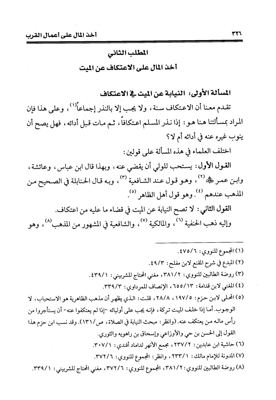 (¬8) روضة الطالبين للنووي: 2/ 381، المجموع للنووي: 6/ 372، مغني المحتاج للشربيني: 1/ 339.