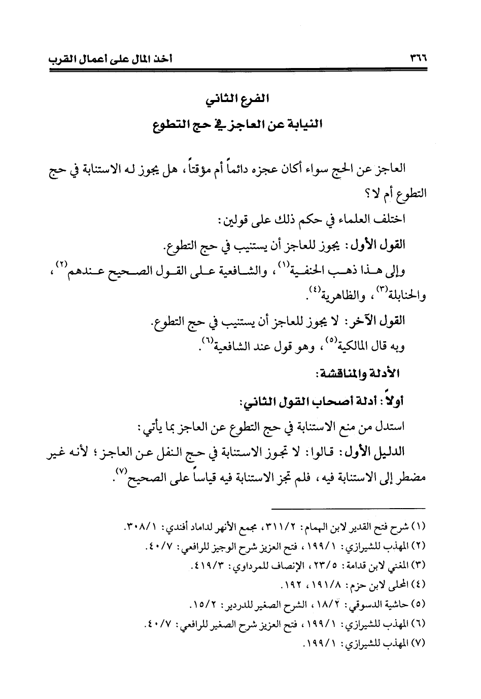 الفرع الثّاني النيابة عن العاجز في حج التطوع