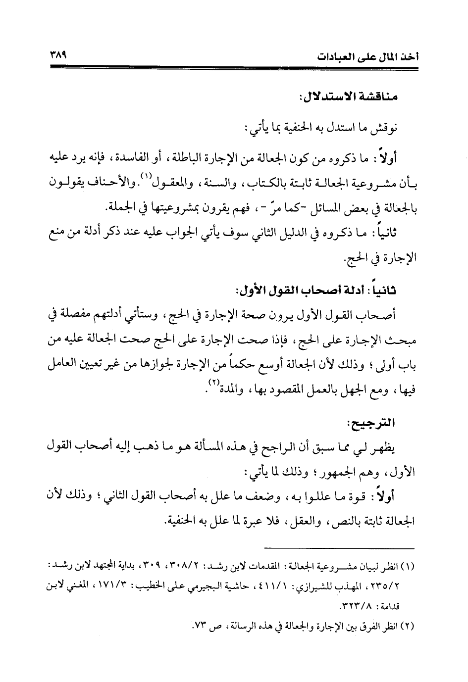 (¬2) انظر الفرق بين الإجارة والجعالة في هذه الرسالة، ص 73.