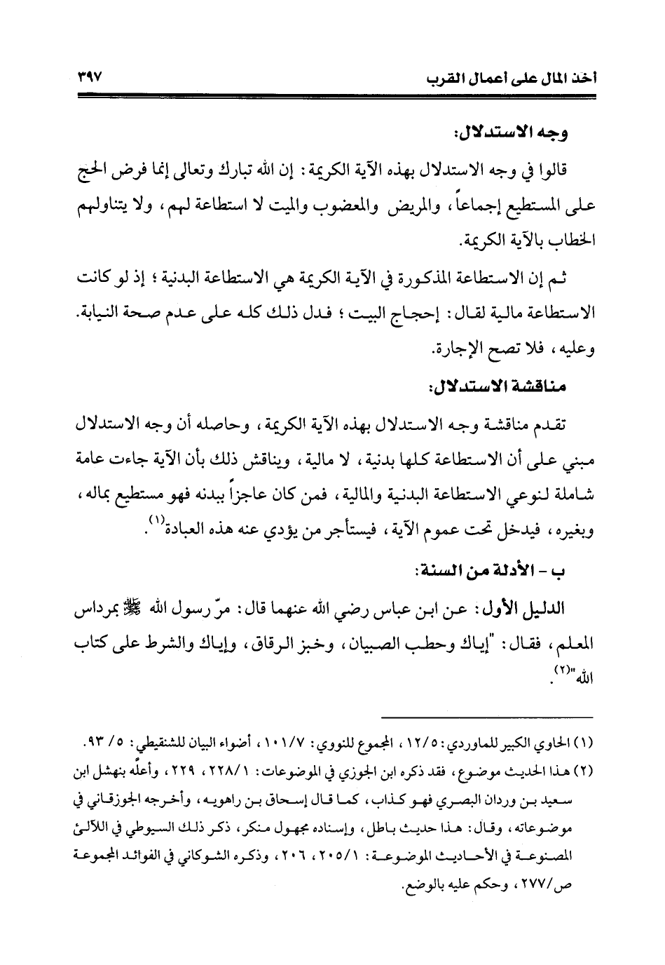 (¬1) الحاوي الكبير للماوردي: 5/ 12، المجموع للنووي: 7/ 101، أضواء اليان للشنقيطي: 5/ 93.