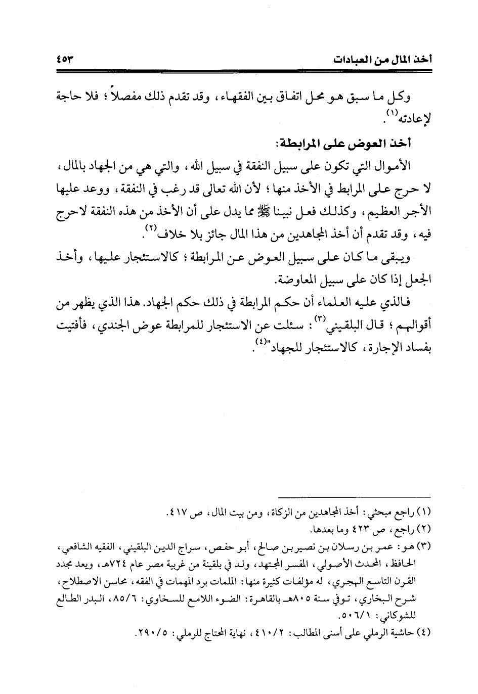 (¬1) راجع مبحثي: أخذ المجاهدين من الزَّكاة، ومن بيت المال، ص 417.