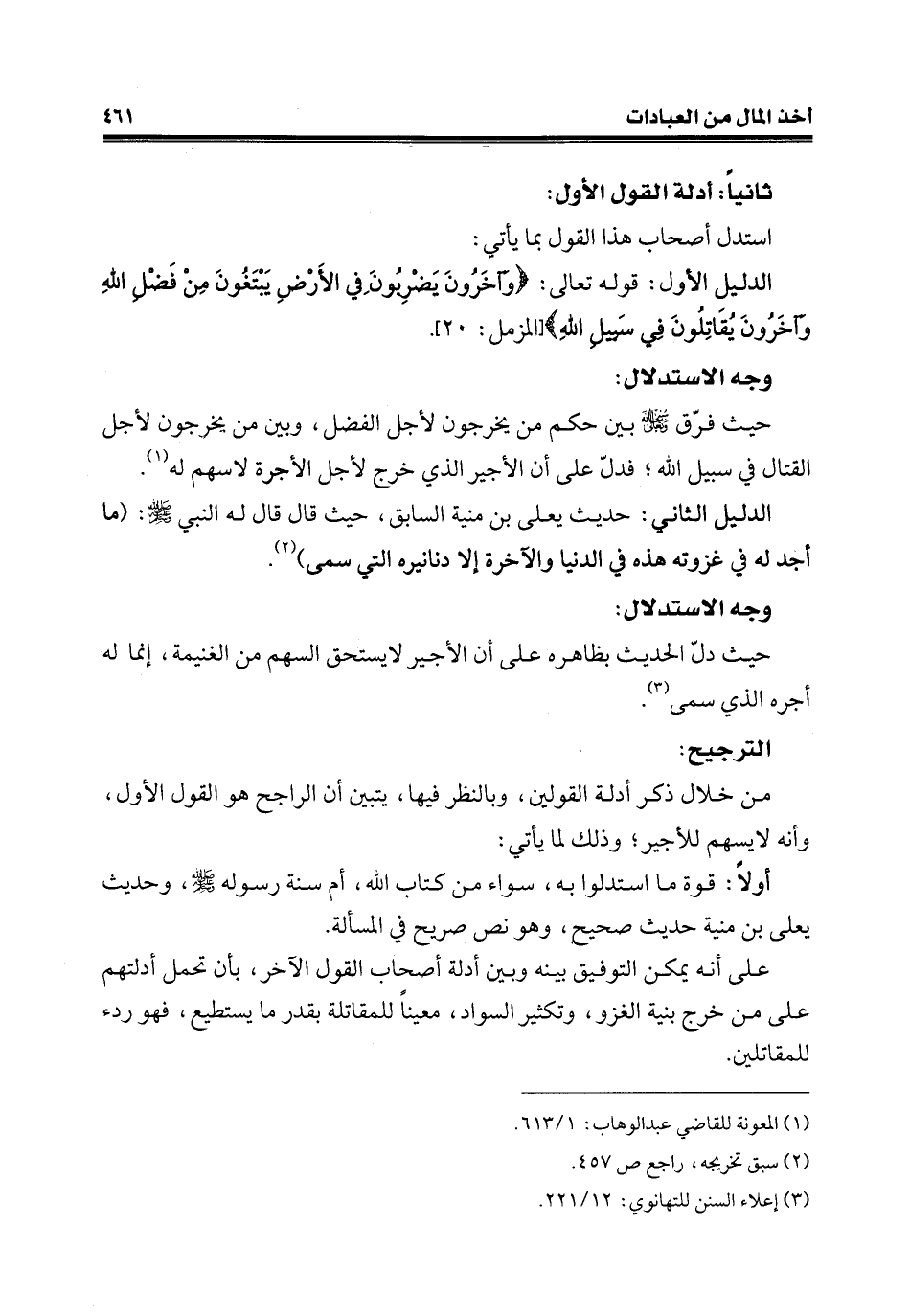 الدّليل الأوّل: قوله تعالى: {وَآخَرُونَ يَضْرِبُونَ فِي الْأَرْضِ يَبْتَغُونَ مِنْ فَضْلِ اللَّهِ وَآخَرُونَ يُقَاتِلُونَ فِي سَبِيلِ اللَّهِ} [المزمل: 20].